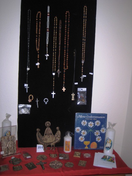 Hier finden Sie kleine Andenken, selbstgefertigte Handarbeiten, Rosenkränze, Bücher über Edith Stein, Artikel aus unseren Missionsländern, usw.
